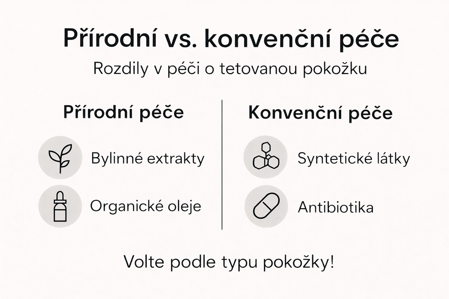 Shrnující srovnání přírodní a konvenční péče po tetování: