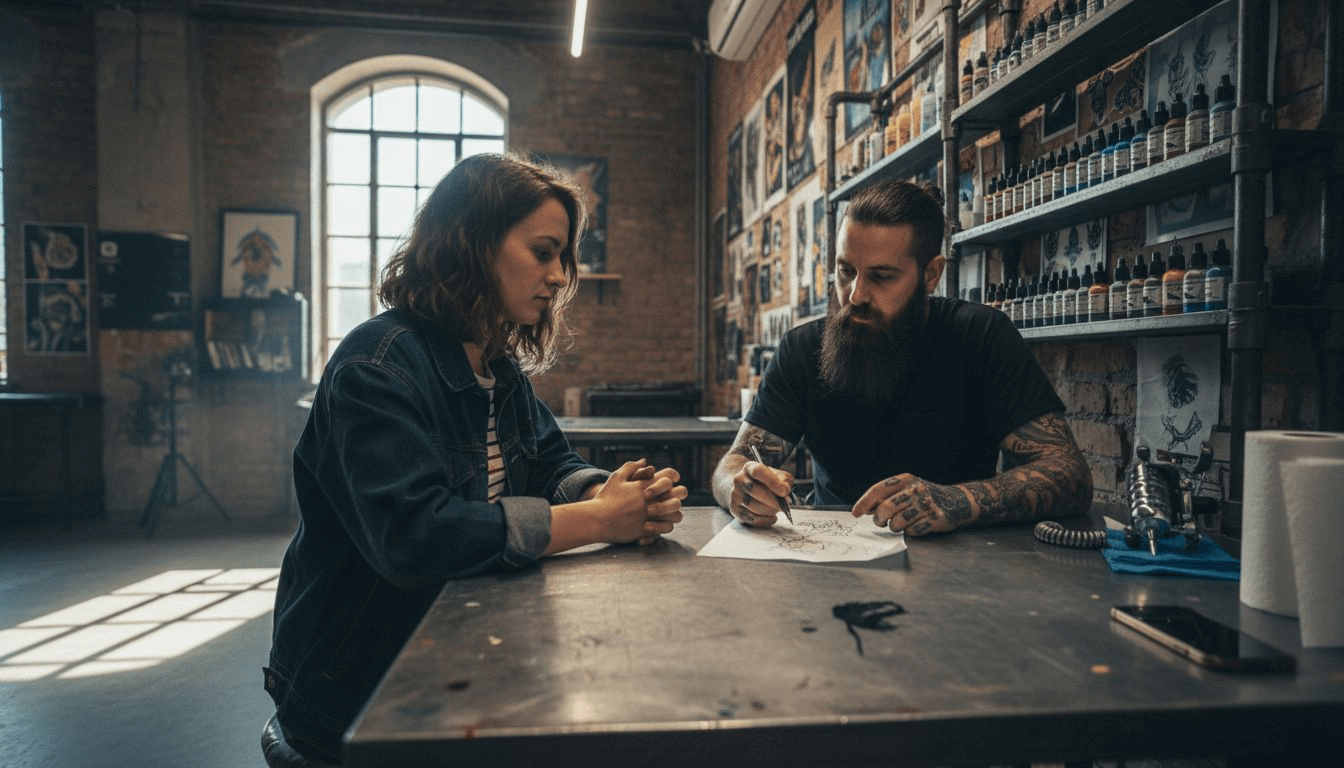 Pro tip: Před tetováním si udělejte důkladný průzkum tetovacích studií, prostudujte si reference umělce a připravte si seznam konkrétních otázek týkajících se vaší představy.