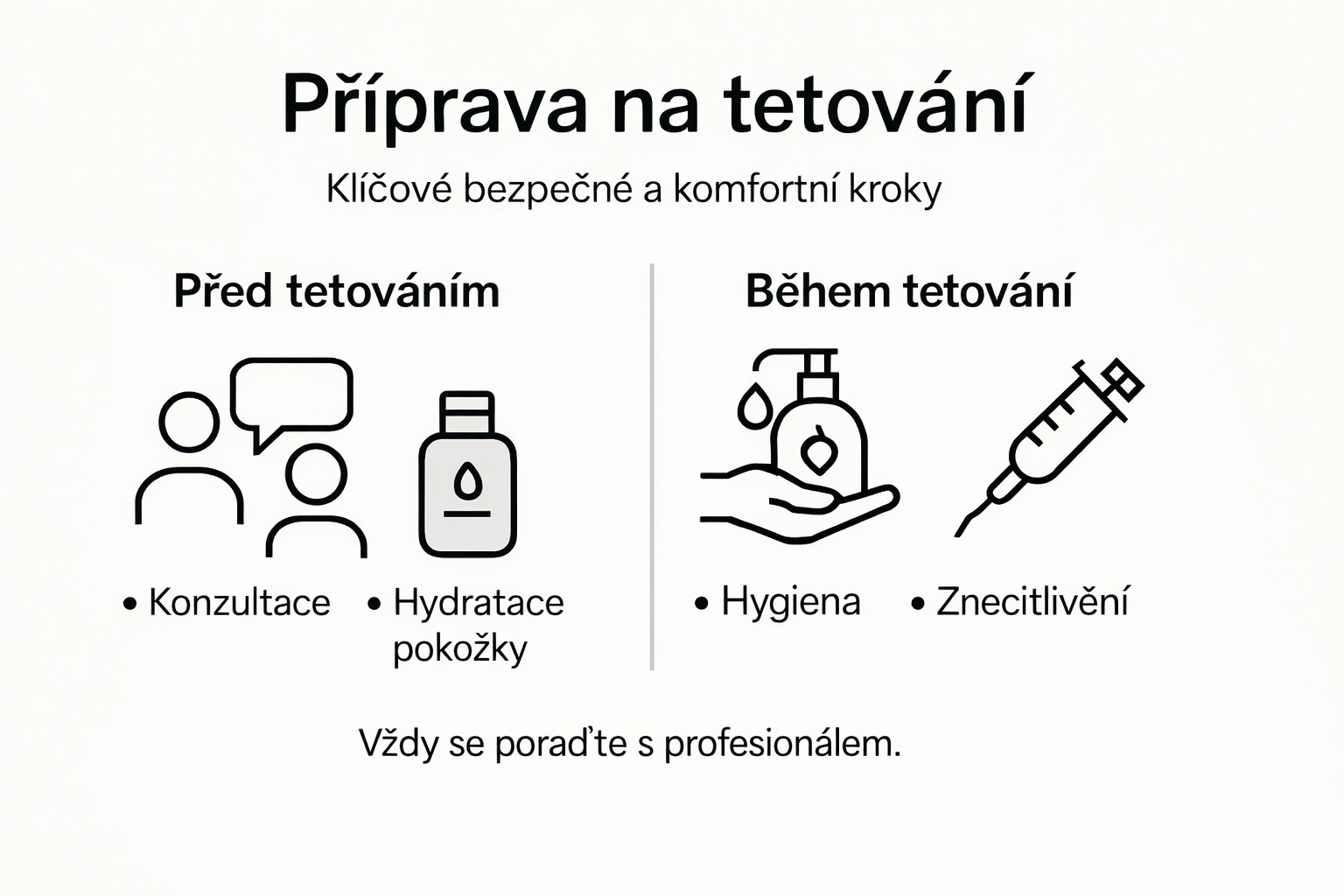 | Důležitost přípravy | Důkladná příprava pokožky a psychická pohoda jsou klíčové pro úspěšné tetování. |