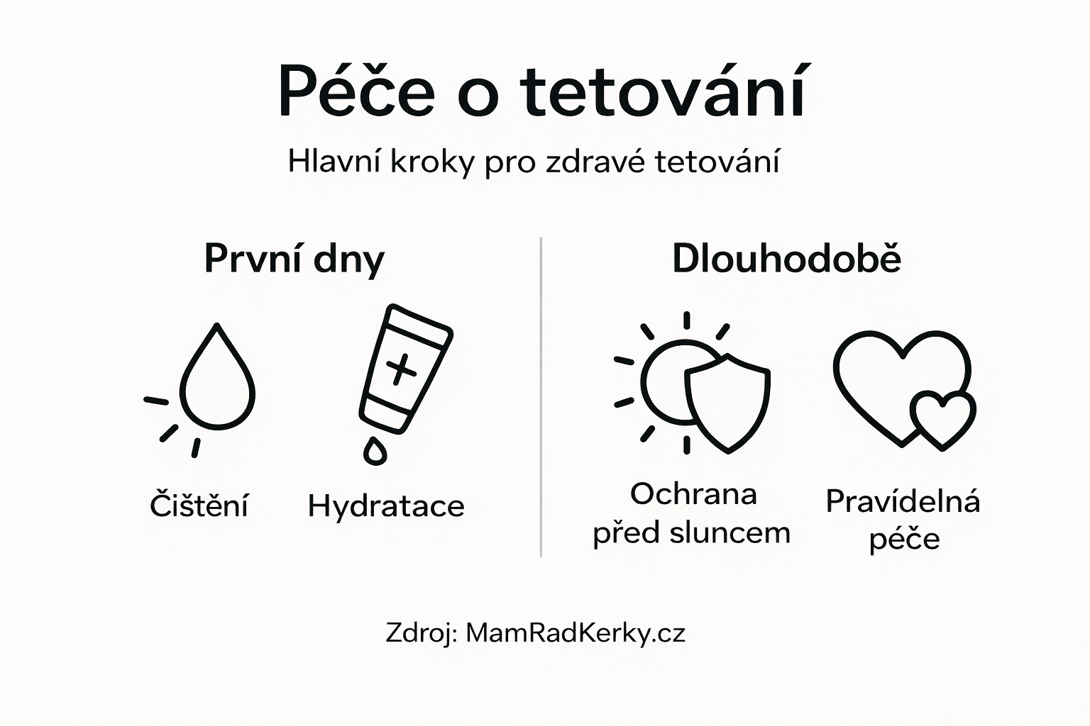 - Typy péče: od čerstvého tetování po dlouhodobou ochranu